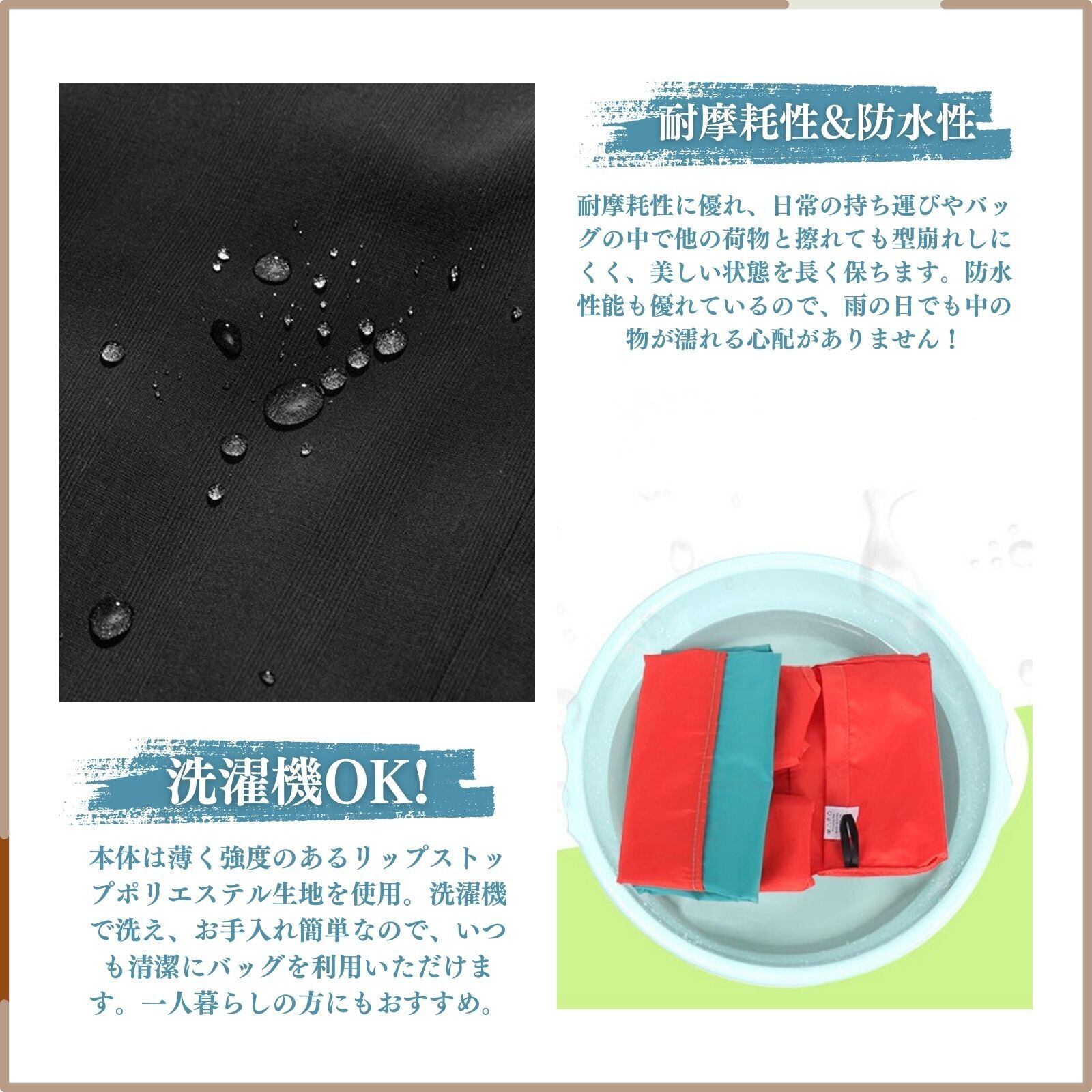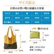 「超大容量!信じられない収納力!」折りたたむと 16×12×2cm、広げると 46×43×10cm(持ち手約 14cm)と使い勝手が良く、寸法には ±3cm の誤差がある場合があります。日常の買い物や旅行にも十分対応できる容量で、耐加重 20kg。持ち手は幅広で厚めで持ちやすく、重い荷物も肩に掛けられ、16 リットルの水のボトルも一人で楽々運べます。