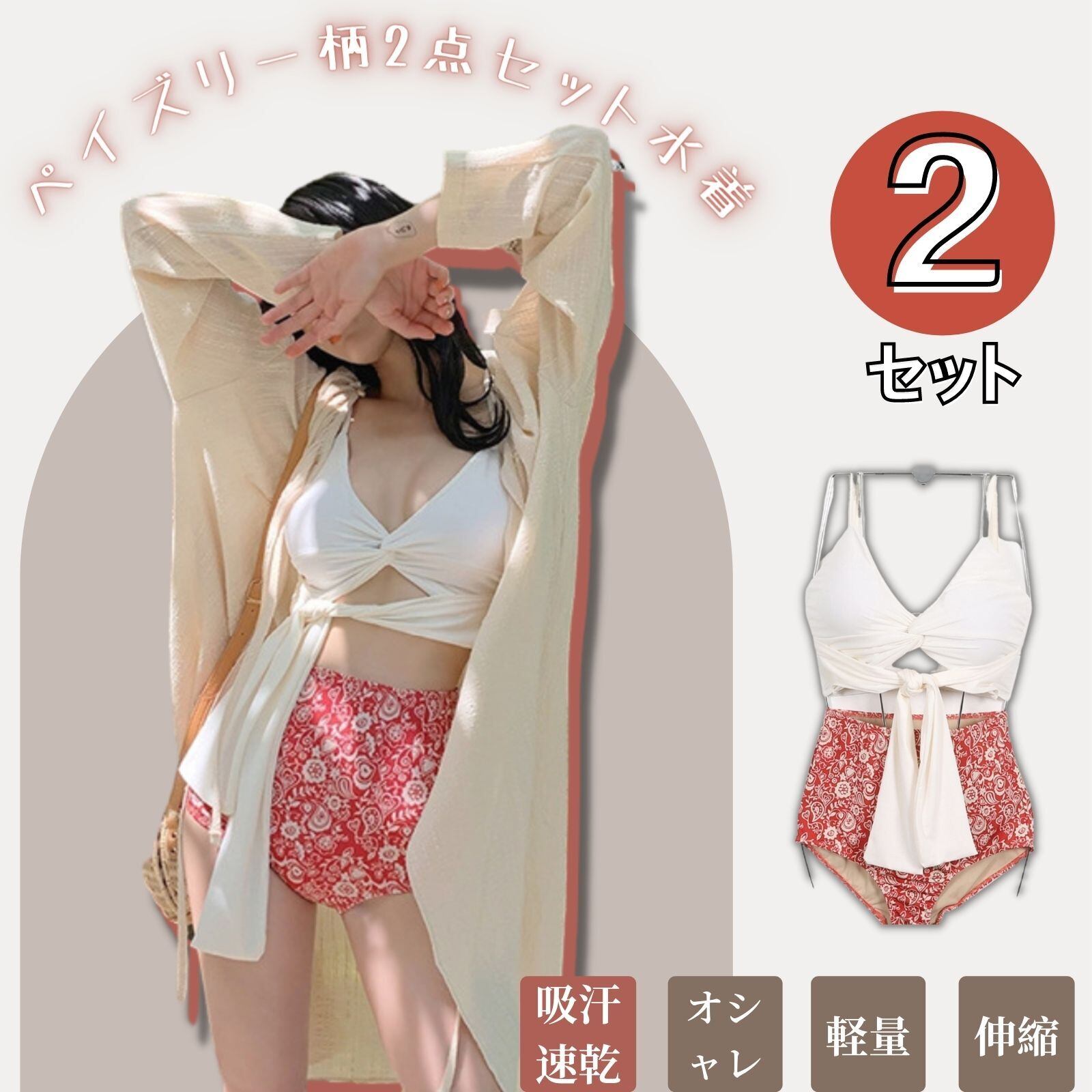 【ペイズリー柄★】ペイズリー柄とパターンがリゾート感up!存在感たっぷりのペイズリー柄は一枚着るだけで雰【2点セット水着】大注目のトロペイズリープリントの上下別柄ビキニです。人気のペ囲気たっぷり。上下で異なる柄や色を組み合わせる流行りのミックススタイルが楽しめます。